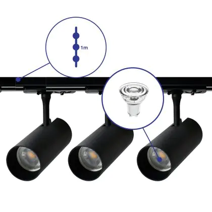 Bright Choice Komplettset 1-Phasen Rail 1 Meter Schwarz | incl. 3x Spot + GU10 2700K 3W Dimmbar + Abschlusskappe, Stromanschluss