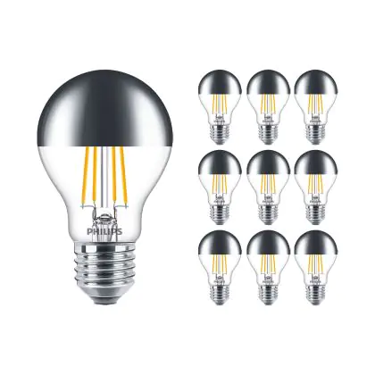 Mehrfachpackung 10x Philips Classic LED Glühbirne E27 Birne Spiegel 7.2W 650lm - 827 Extra Warmweiß | Dimmbar - Ersatz für 60W