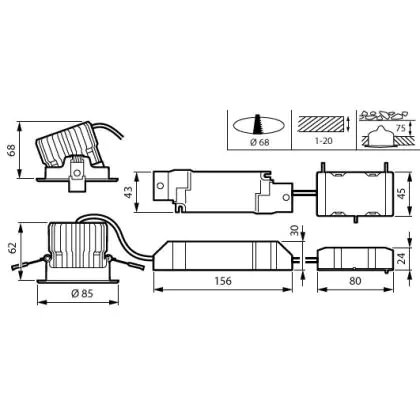 Der Ausschnitt einer Leuchte unterscheidet sich von den Abmessungen der Leuchte selbst und bezeichnet speziell die Grösse der Öffnung in der Decke, die für die sichere Montage der Lichtquelle benötigt wird.