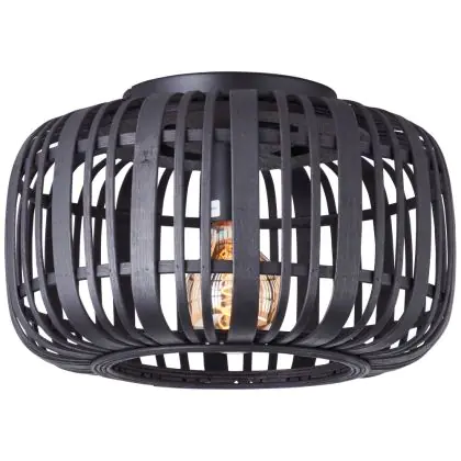 Brilliant Boisrow Plafonnier Métal Bambou Noir Bois | 320mm - Convient pour 1x E27