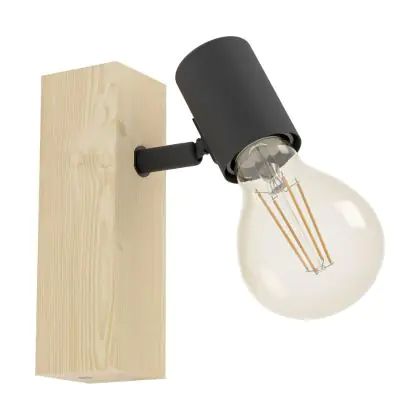 Eglo Applique Murale Townshend 3 Bois Échantillon Noir | IP20 - Convient pour 1x E27