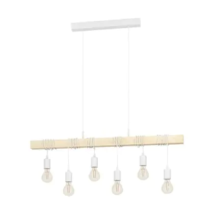 Eglo Suspension Luminaire Townshend Échantillon Blanc Bois | IP20 - Convient pour 6x E27