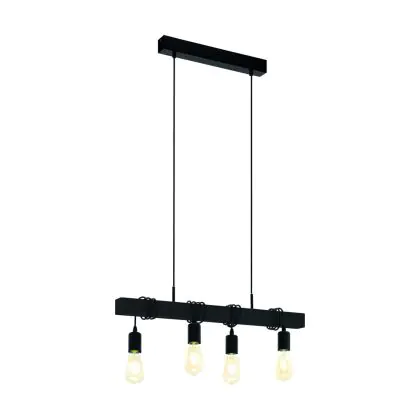 Eglo Suspension Luminaire Townshend Échantillon Bois Noir | IP20 - Convient pour 4x E27
