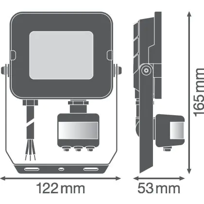 Description Ledvance Projecteur LED Compact Noir 20W 1800lm 100D - 830 | IP65 - Symétrique - Détecteur de mouvement et de lumière