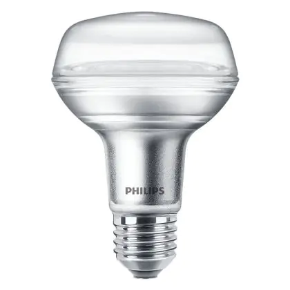 La lampe LED Philips Corepro LED Spot E27 R80 4W 345lm 36D - 827 Blanc Très Chaud | Équivalent 60W avec culot E27 (Ampoule à vis standard) est le remplacement idéal des lampes à incandescence et halogènes classiques. En raison de la faible consommation d'énergie, vous économisez considérablement sur vos coûts d'énergie. Les lampes à LED Philips n’utilisent qu’une petite partie de la puissance (4 W) que les lampes à incandescence et halogènes classiques (60 W). Les lampes à LED ont une excellente classe énergétique F, ce qui signifie qu'elles sont très écologiques et peuvent être recyclées après utilisation. En raison de leur durée de vie considérable de 15000 heures, vous n’aurez pas à les changer de si tôt.