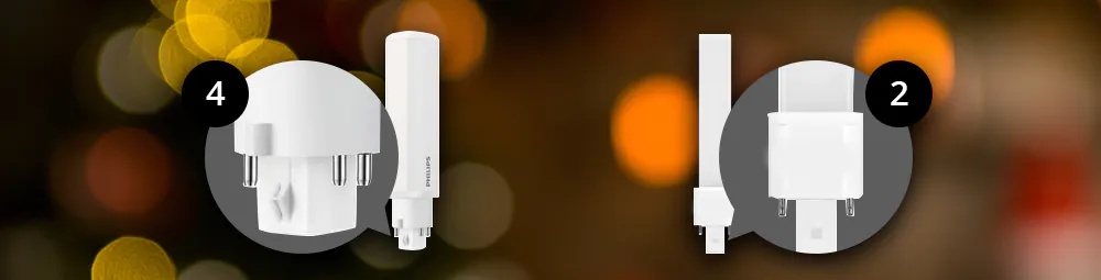 ![]() Pour les ampoules basse consommation (LED), il existe des raccords/bases de lampe à 2 ou 4 broches. Choisissez toujours une ampoule à faible consommation d'énergie avec le même culot qu'auparavant, sinon elle ne rentrera pas dans le luminaire et ne fonctionnera pas. Les ampoules basse consommation avec un culot à 2 broches fonctionnent avec un ballast conventionnel (EM), starter inclus. Les amooules basse consommation avec un culot à 4 broches fonctionnent avec un ballast électronique (HF) sans starter. |